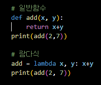 람다식은 일반적으로 def 키워드를 사용해서 만드는 함수와 달리,