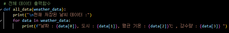 - weather_data는 전역변수로 선언해서 굳지 매개변수로 넣지 않아도 되지만,