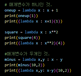 변수 = lambda 매개변수 : 표현식
