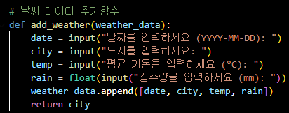 ▲ 날씨 데이터 추가함수