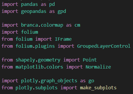 이번 프로젝트에서는 수업 때 배웠던 folium, matplotlib 등을 사용하기도 했지만, 배우지 않았던 다른 적합한 라이브러리와 패키지를 찾아보며 적용했습니다.