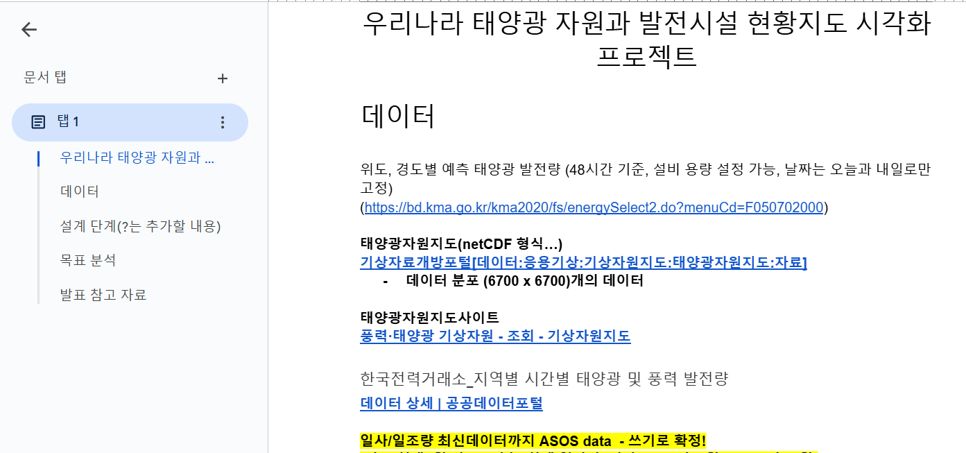 우리의 첫 팀프로젝트는 태양광 자원인 일사량을 지도에 표시하고,